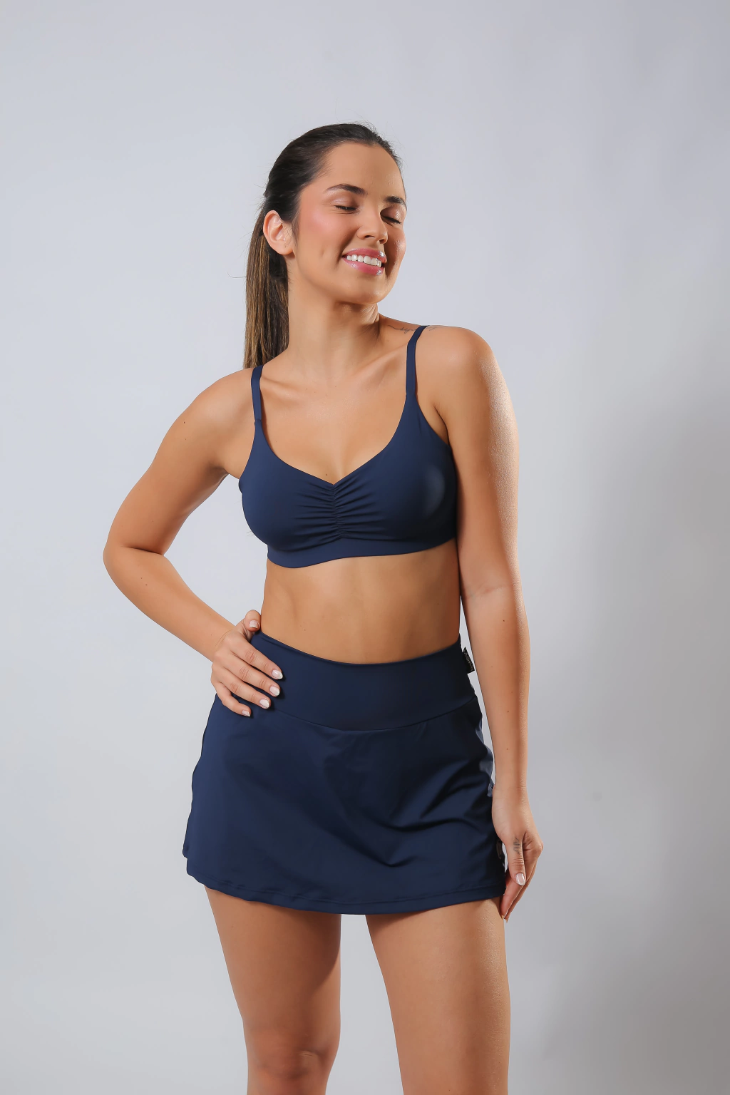 COMPOSIÇÃO: 85% poliamida e 15% elastano MODELO: Saia Beach Marinho COR: Marinho